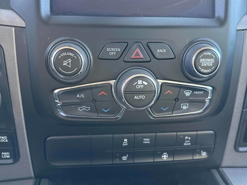 - Black Ram 1500 Express GroupIncludes flat black badges, black headlamp bezels, black honeycomb grille, black RAM tailgate nameplate, 8.4 inch touch screen display, Apple CarPlay, Android Auto, AM/FM radio, HD radio, integrated voice command with Bluetooth, media hub with USB and auxiliary audio inputs, SiriusXM satellite radio and Guardian, automatic temperature control w/dual zone control, humidity sensor, 7.0 in. TFT cluster color display, temperature and compass gauge, and overhead console.