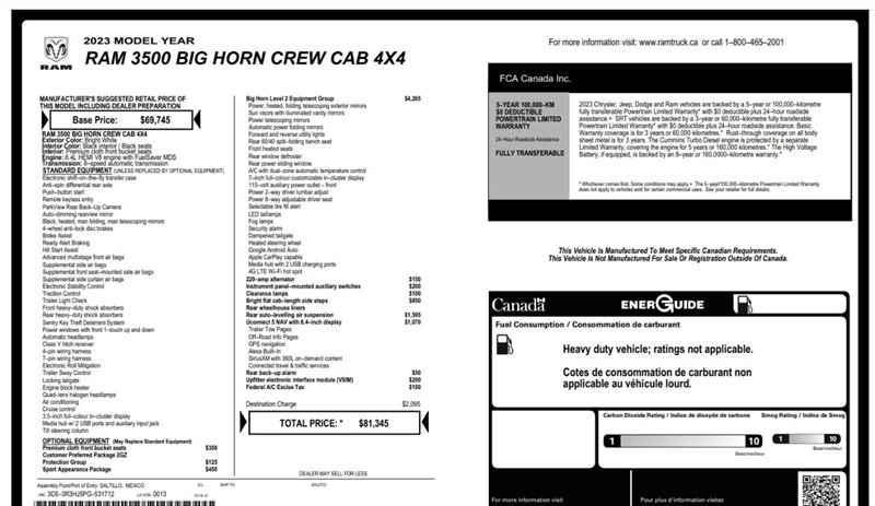 2023 Ram 3500 Big Horn Sport Crew Cab 4x4 Long Box