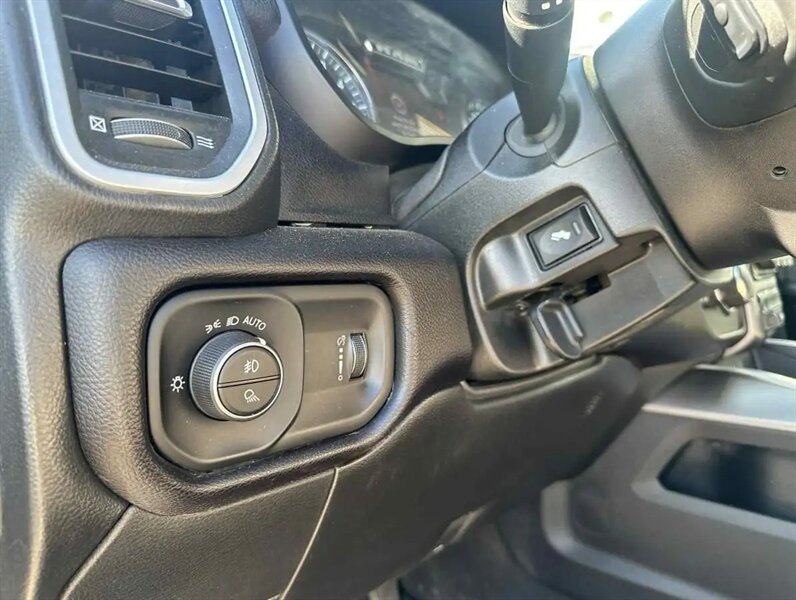 - Level 2 Equipment GroupIncludes 8.4 inch touch screen display, Apple Carplay, Android Auto, AM/FM radio, HD radio, integrated voice command with Bluetooth, media hub with USB and auxiliary audio inputs, SiriusXM satellite radio, 4G LTE Wi-Fi hotspot, 7.0 in. TFT cluster color display, dual zone automatic climate control air-conditioning, 115V front power outlet, blind-spot monitoring with trailer coverage and rear cross path detection, ParkSense front and rear park assist system, LED taillamps, dampened tailgate, power sliding rear window, rear dome light with on/off switch, power folding and power telescoping exterior tow mirrors with supplemental signals and courtesy lamps, black mirror caps, forward and reverse utility lights, front fog lamps, cloth 40/20/40 premium split bench seat, 8-way power adjustable driver seat with power lumbar adjustment, 4-way manual adjust passenger seat, heated front seats, front seatback map pockets, front armrest with cupholders, front center seat cushion storage, leather wrapped heated steering wheel with audio controls, power adjustable pedals, remote start, security alarm, and universal garage door opener.