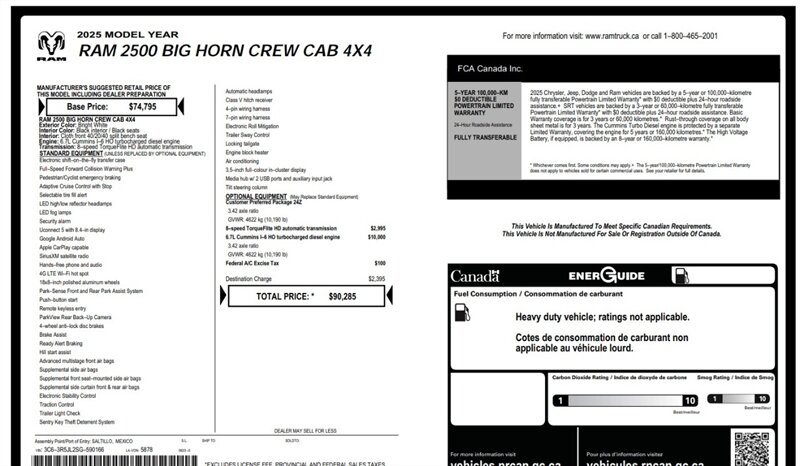 2025 RAM 2500 Big Horn Diesel (NEW) 4-Door Truck